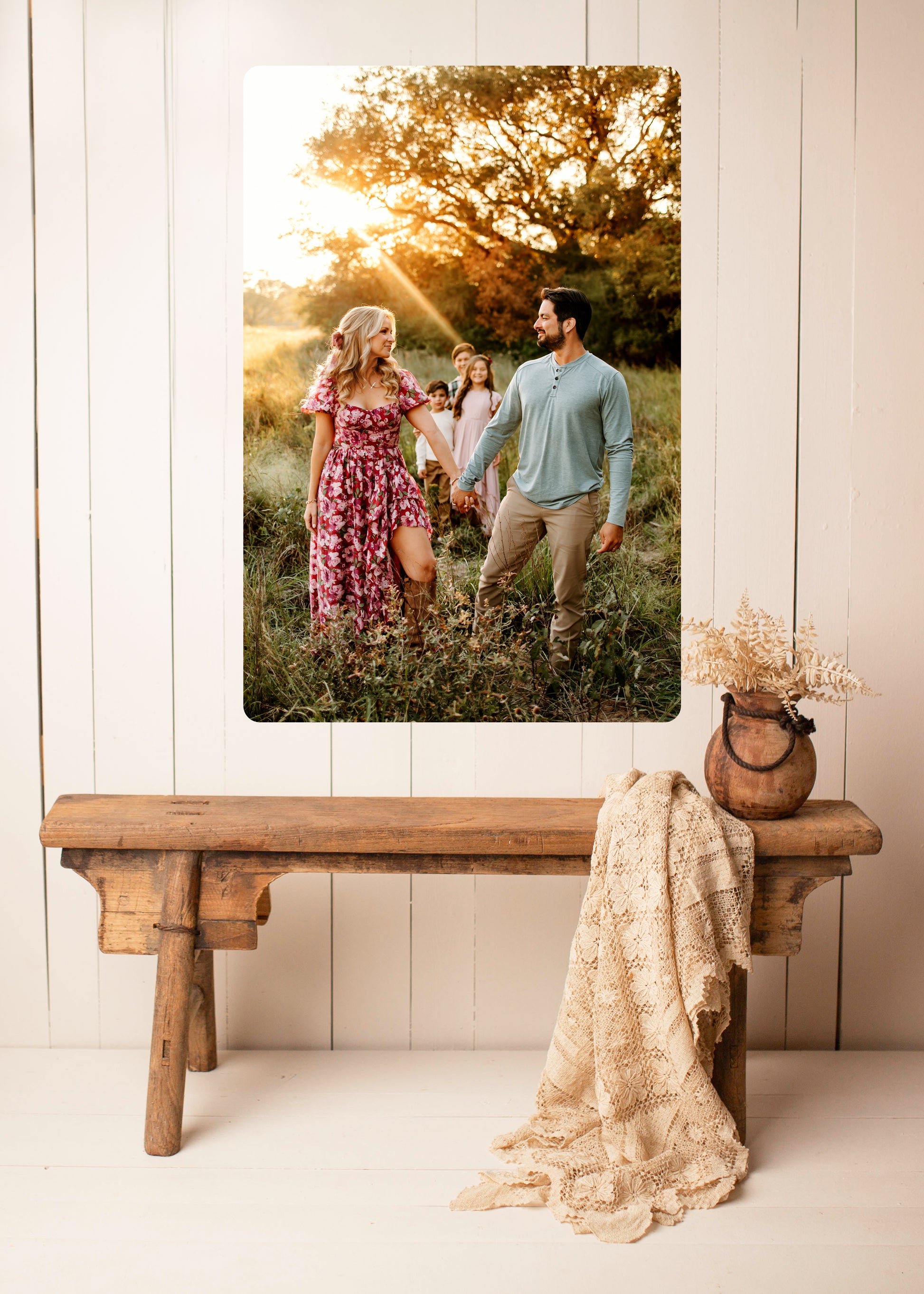Our high quality photographs are printed on luster paper that is adhered to a UV coated high quality plywood, and finished off with a spray that enhances UV resistance to fading.